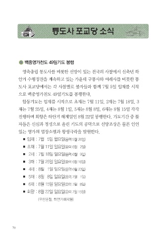 진행하며 회향은 하안거 해제일인 8월 22일 봉행한다. 기도기간 중 불