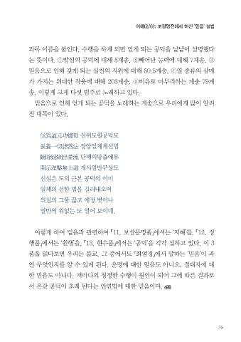 과목 이름을 붙인다. 수행을 하게 되면 얻게 되는 공덕을 낱낱이 설명했다