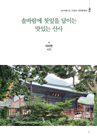 산사카페 32 / 진관사 ‘연지원’에서 솔바람에 찻잎을 달이는 맛있는 산사 ● 이서연 시인 52 53