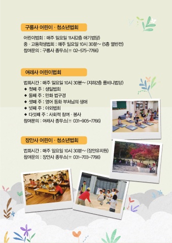 어린이법회 : 매주 일요일 11시(2층 애기법당)