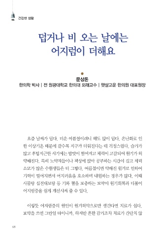 기력이 떨어지면서 어지러움을 호소하며 내원하는 경우가 많다. 이때