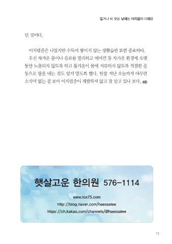덥거나 비 오는 날에는 어지럼이 더해요